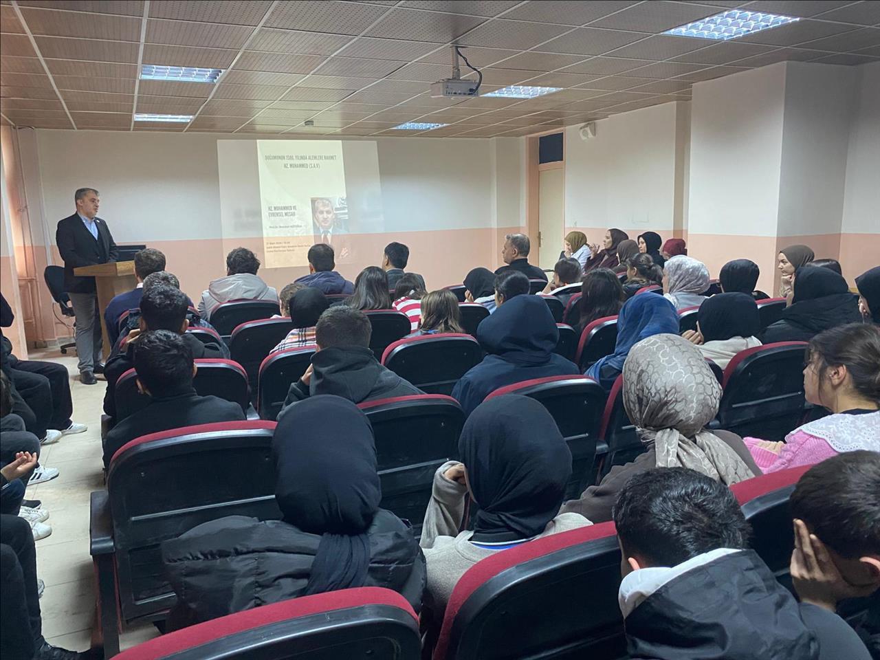 Fakültemiz Temel İslam Bilimleri Bölümü Başkanı Prof. Dr. Nurullah Agitoğlu Şırnak Merkez Şehit Ahmet Kara İmam Hatip Lisesinde öğrencilere yönelik Hz. Peygamber (sas) ve Evrensel Mesajı konulu konferans verdi. Hz. Peygamber'in hayatından örneklerle açıklama yapan Agitoğlu, öğrencilerin sorularına da cevaplar verdi. Konferans sonunda Lise Müdürü Dr. Rahmet Koluman tarafından hocamıza teşekkür belgesi takdim edildi.